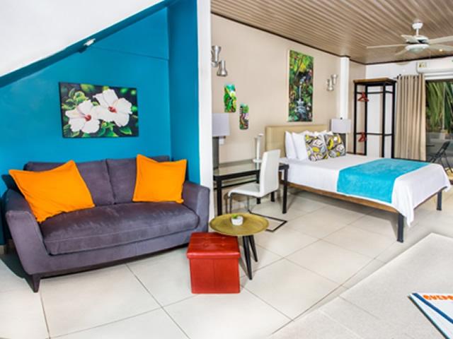 12 studios et villas modernes, réservés aux adultes, idéalement situés à l'écart de l'agitation des foules, mais à seulement 4 km du célèbre parc et des plages de Manuel Antonio. Une communauté variée de couples, de nomades et de retraités du monde entier profite de cette escapade dans un jardin secret. Profitez de nos studios bien aménagés, de notre service de qualité supérieure et de notre guide d'informations locales pour vous aider à tirer le meilleur parti de votre budget de vacances et du temps précieux que vous passez dans cette région. Un mini-super avec un centre touristique et des arrêts de bus juste à l'entrée de l'hôtel rendent votre séjour encore plus facile.